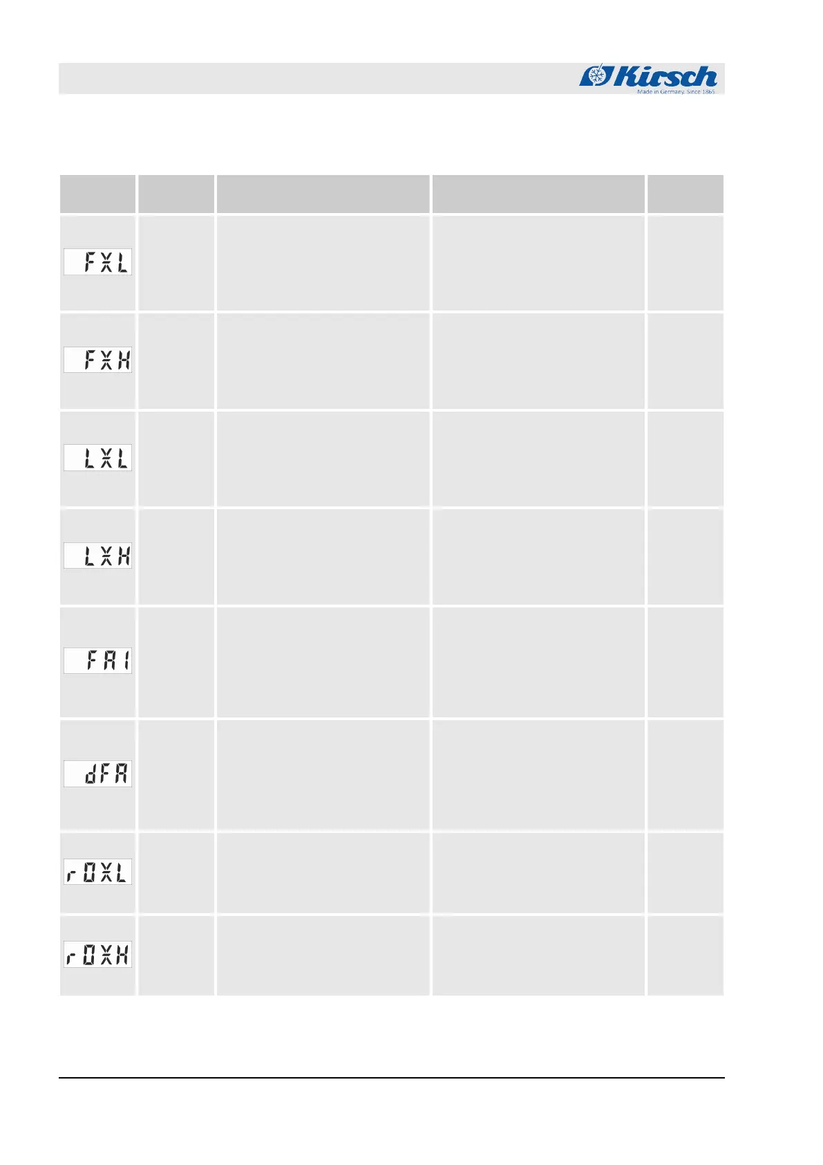Tab. 11: Error messages of the unit