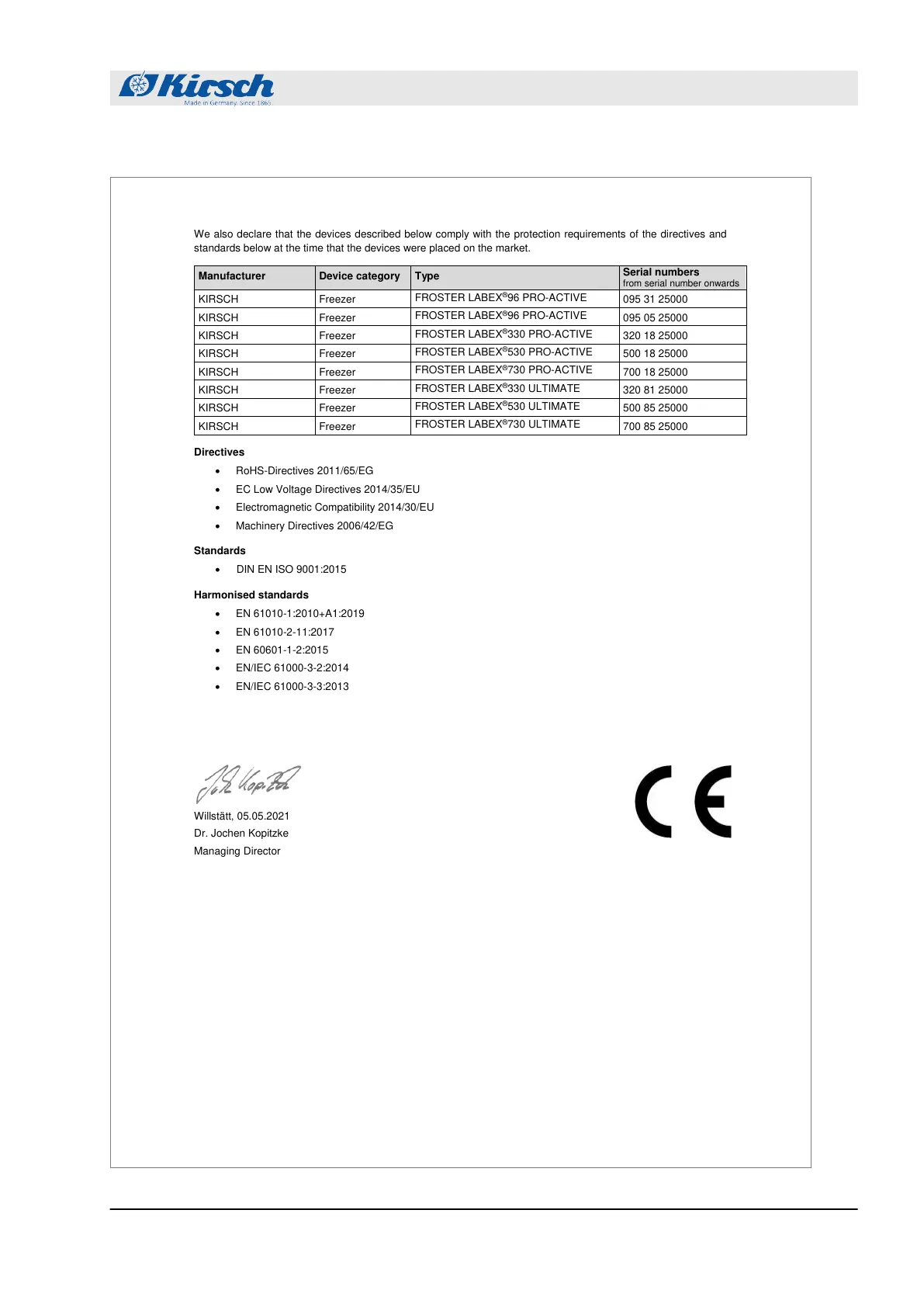 We also declare that the devices described below comply with the protection requirements of the directives and