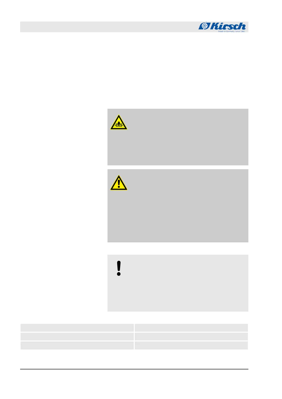 Danger of crushing injuries from falling unit!