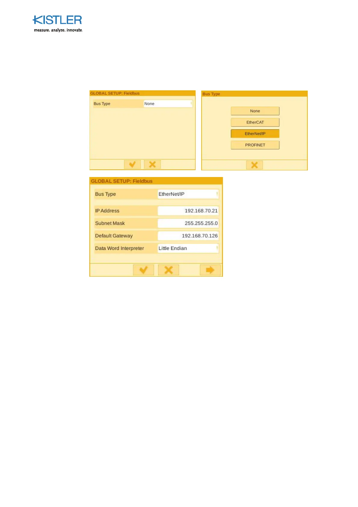 mask for the EtherNet/IP IP address. Standard gateway IP address of the fieldbus network.