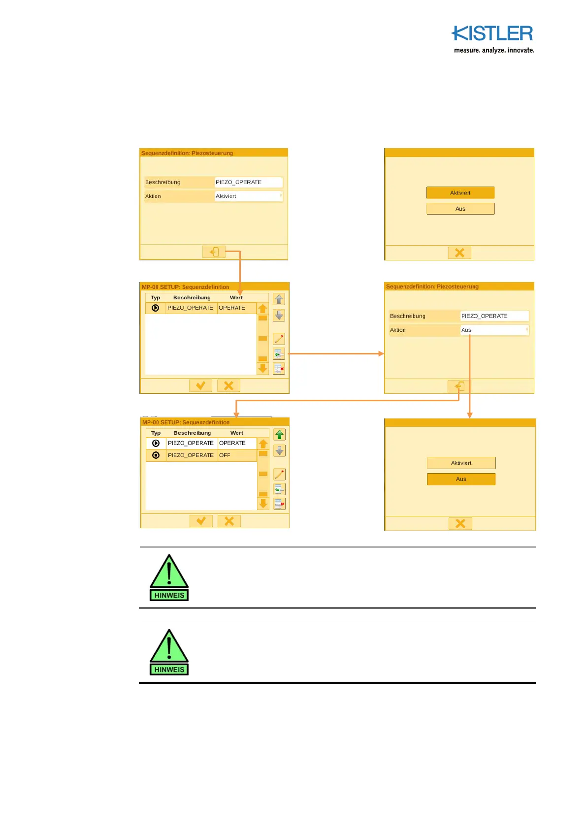 The PIEZO OPERATE element is used to perform a variable measurement start or stop of the