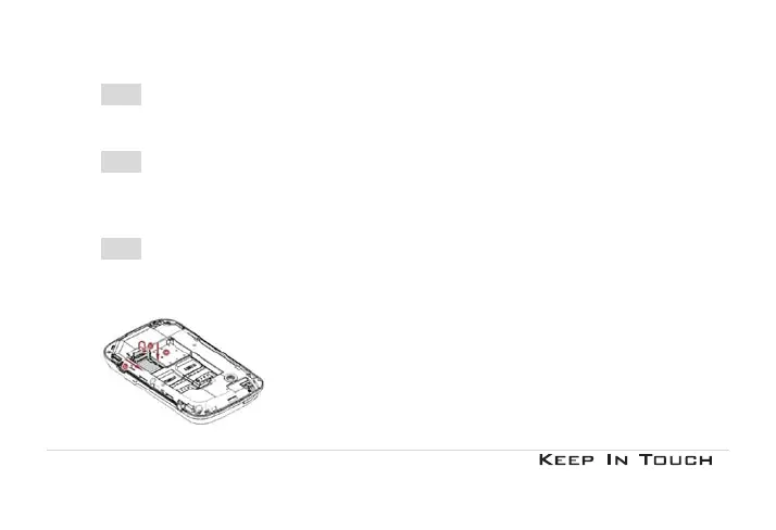 Lift up the T-Flash card cover, with the metal contacts facing down, gently slide the T-Flash card into the slot.