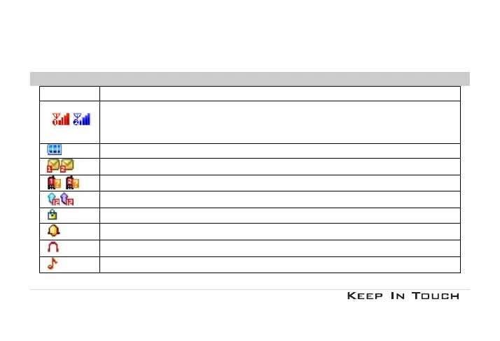 Network - Indicates signal strength (no bar indicates no signal; 4 bars indicate strongest).