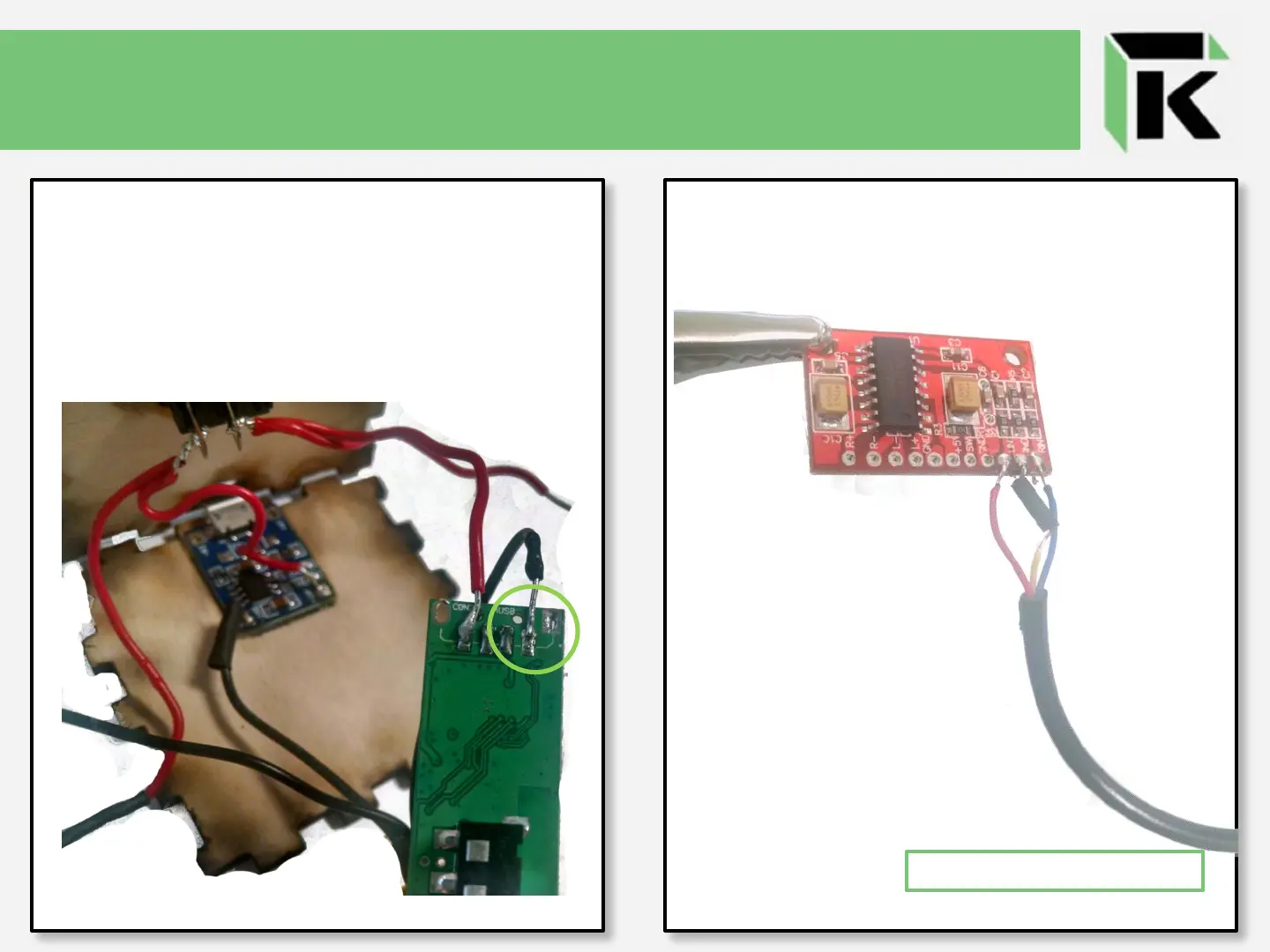 Solder the wires from the audio cable to