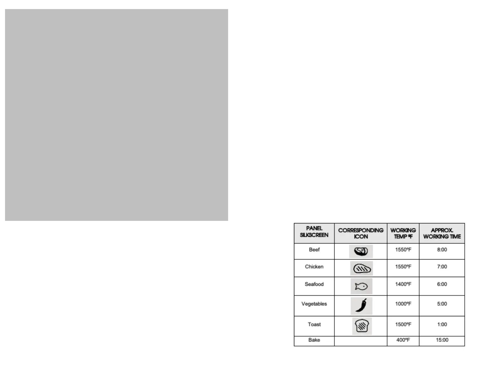 • When in use, you may notice flare ups inside the Searing Oven. This