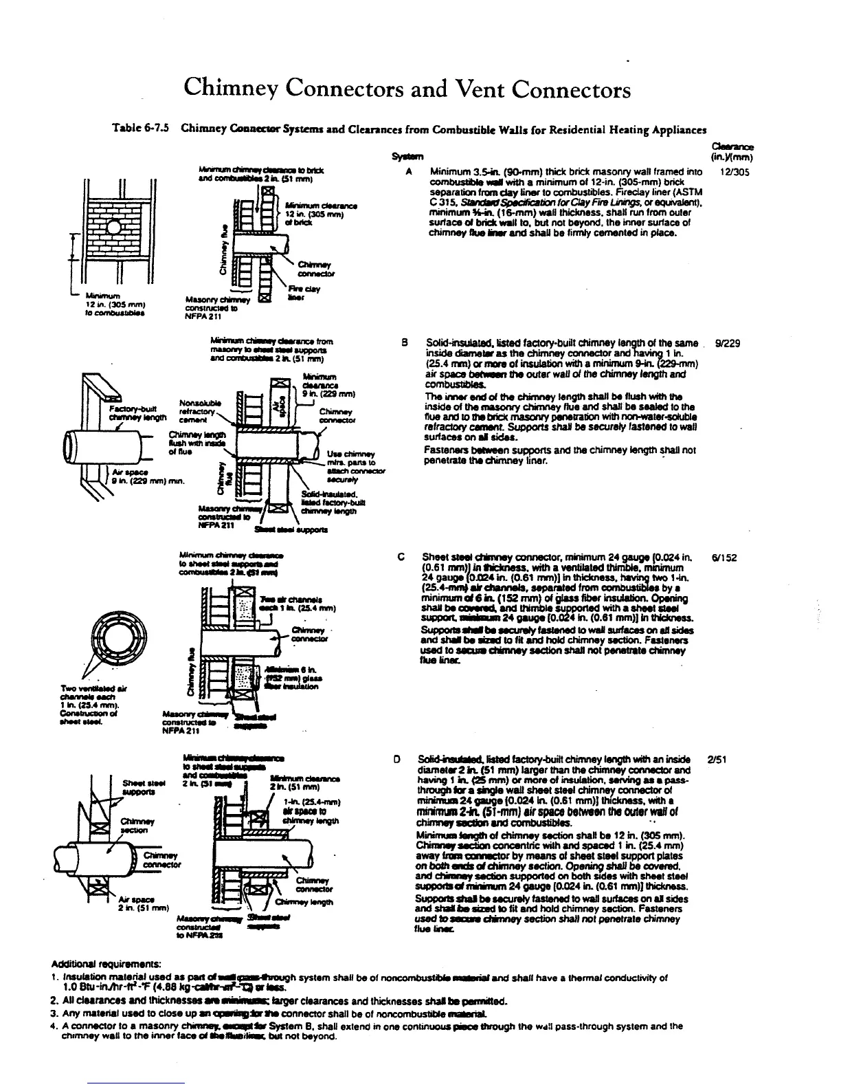Kitchen Queen Stove - Chimney Connector and Vent Systems; System A: Masonry Chimney; System B: Factory-Built Chimney; System C: Sheet Steel Connector
