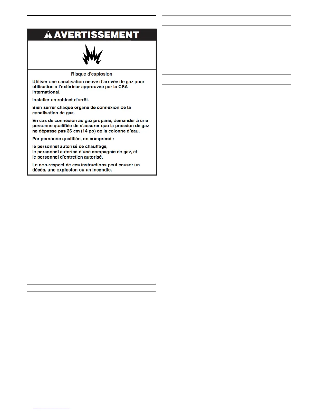 Le gril doit être isolé des canalisations d'alimentation en gaz