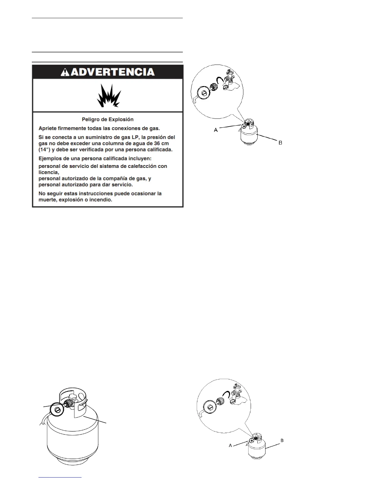 NOTA: Mantenga siempre el cilindro de gas LP en una
