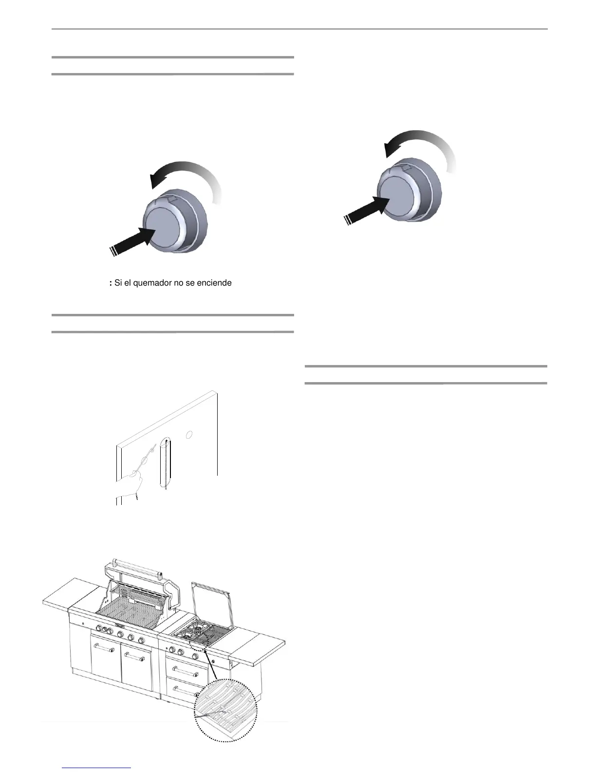 6. Empuje hacia dentro y gire la perilla del quemador hacia
