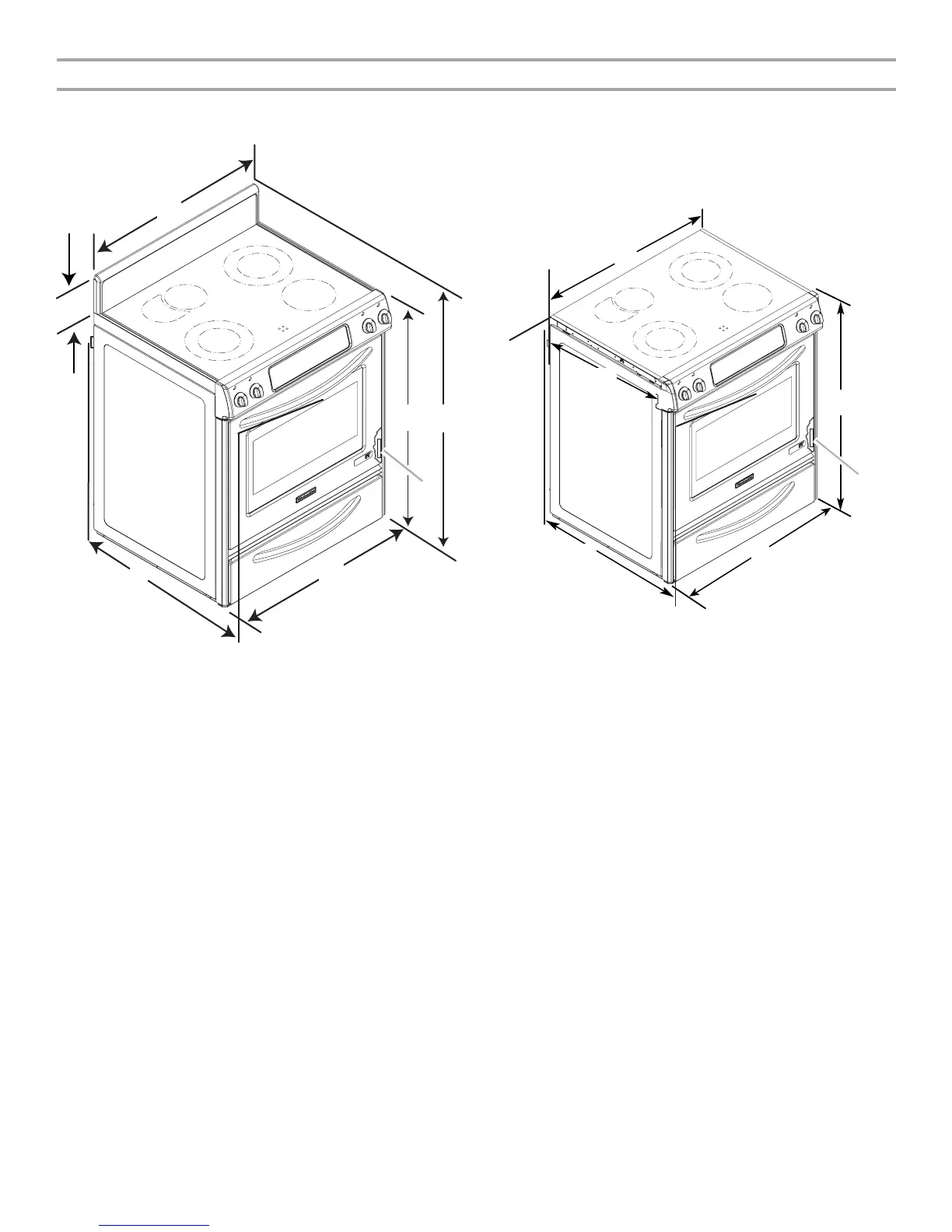 countertop; front of oven door protrudes 1" (2.5 cm) beyond