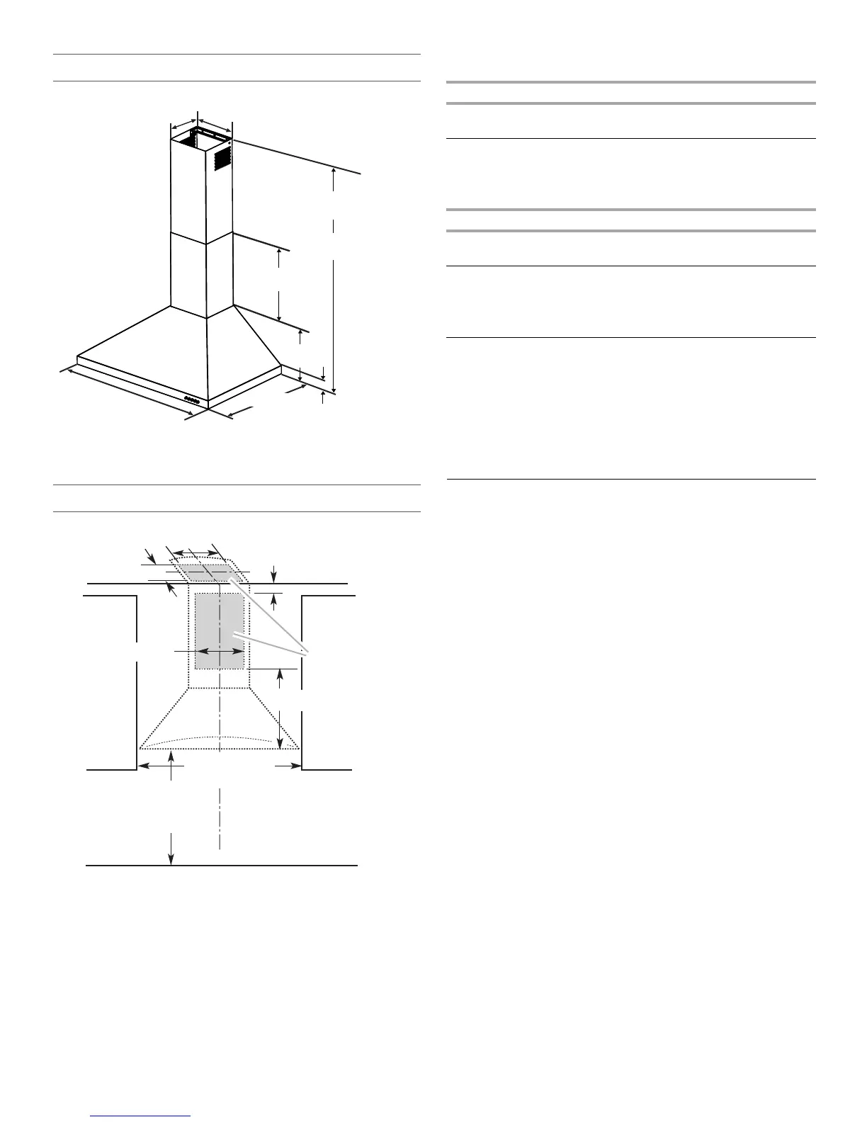 plafond ou soffite, selon la distance “X” entre le bas de la hotte