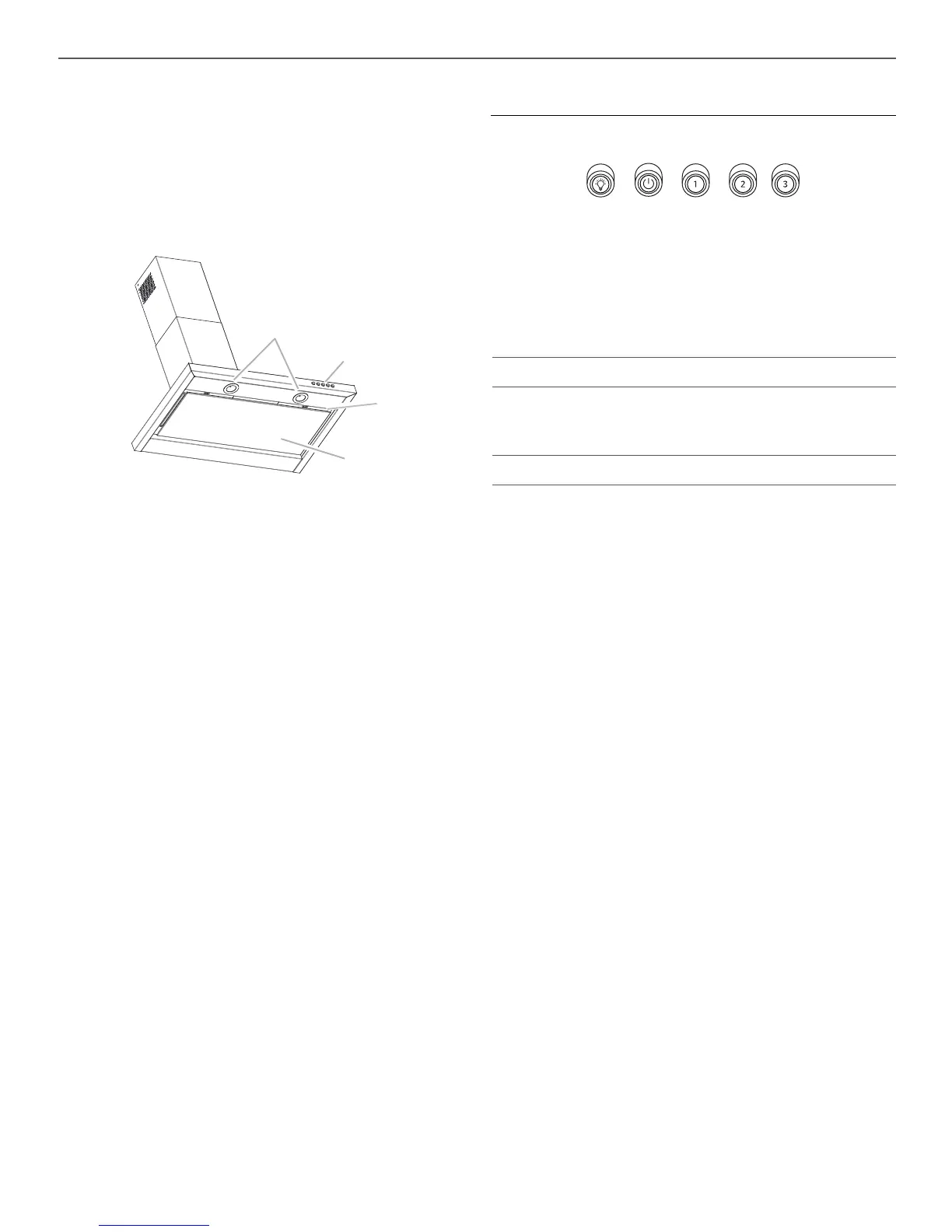 Les commandes de la hotte se trouvent sur le panneau avant-
