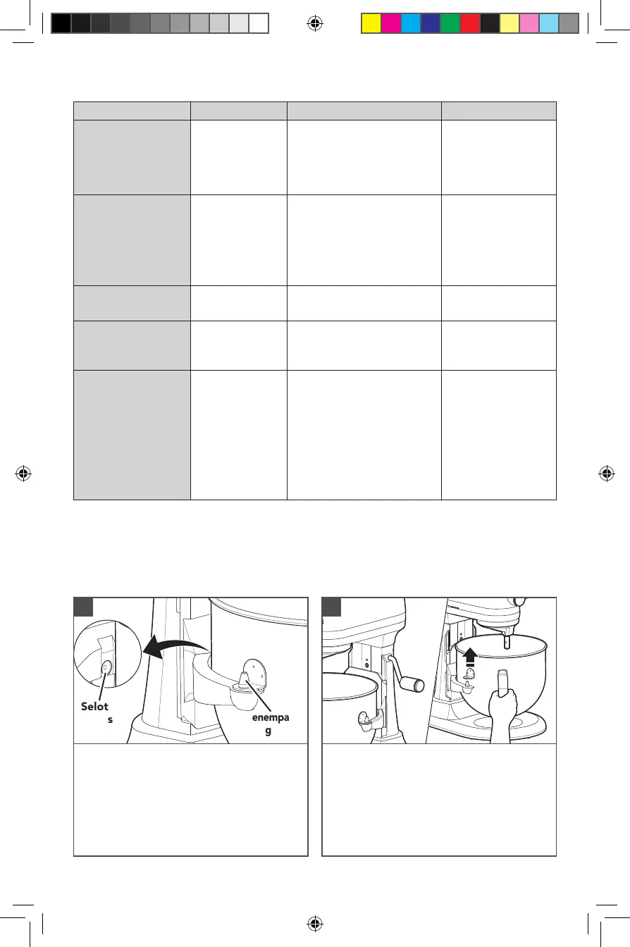 Menggunakan kecepatan yang lebih tinggi berpotensi menyebabkan Stand Mixer