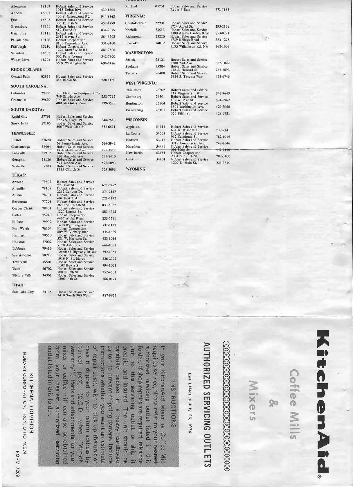 KitchenAid 4-C - AUTHORIZED SERVICING OUTLETS; INSTRUCTIONS