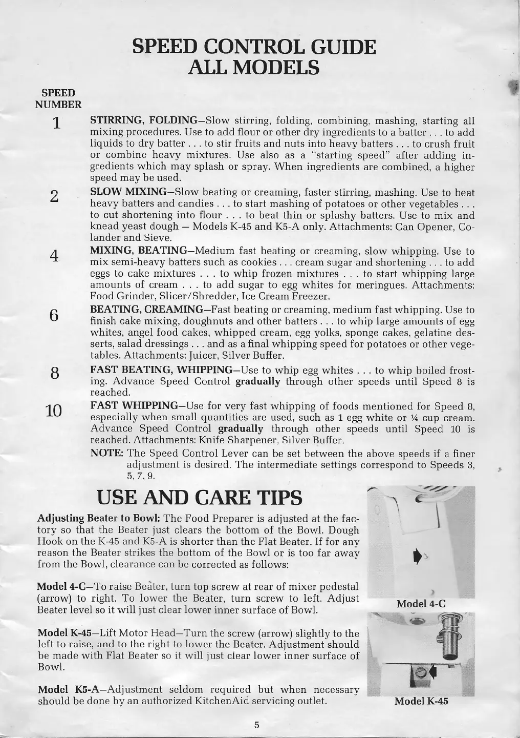 knead yeast dough - Models K-45 and K5-A only. Attachments: Can Opener, Co-