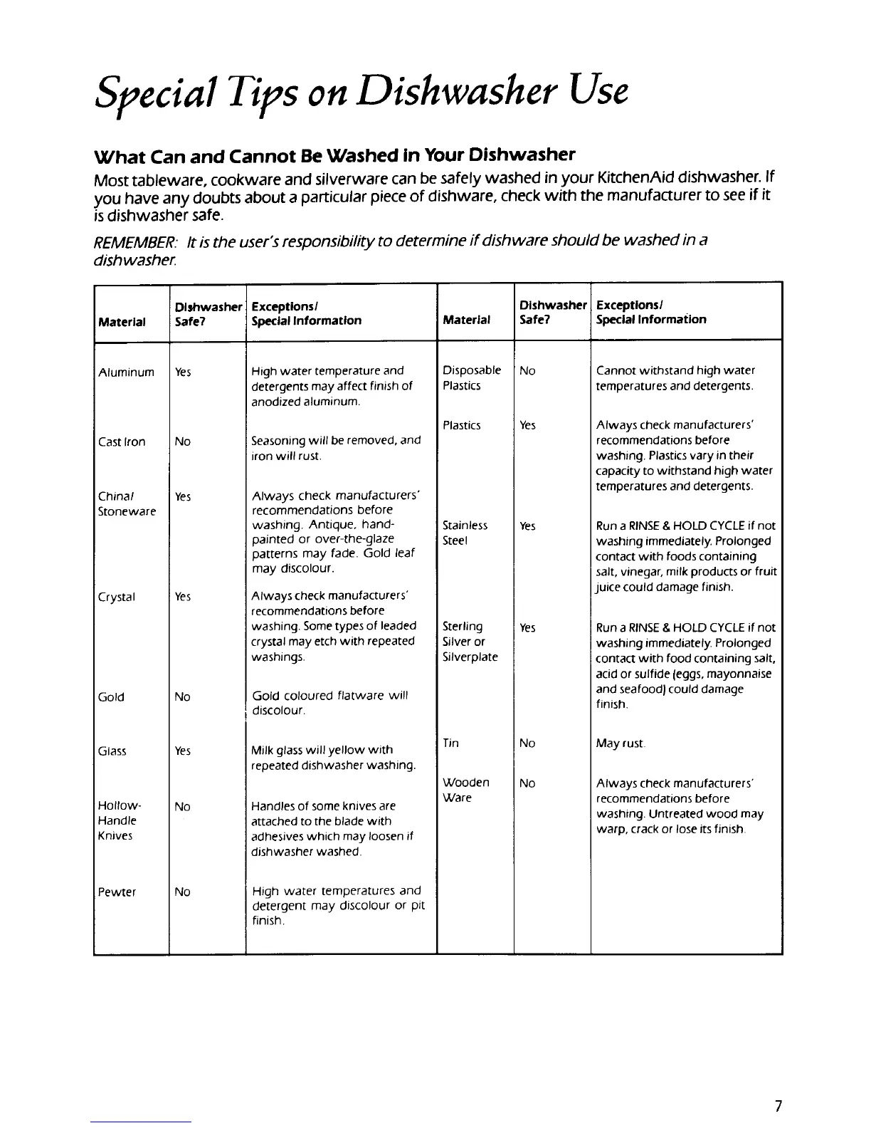 KitchenAid 4KUDA22OT - Special Tips on Dishwasher Use
