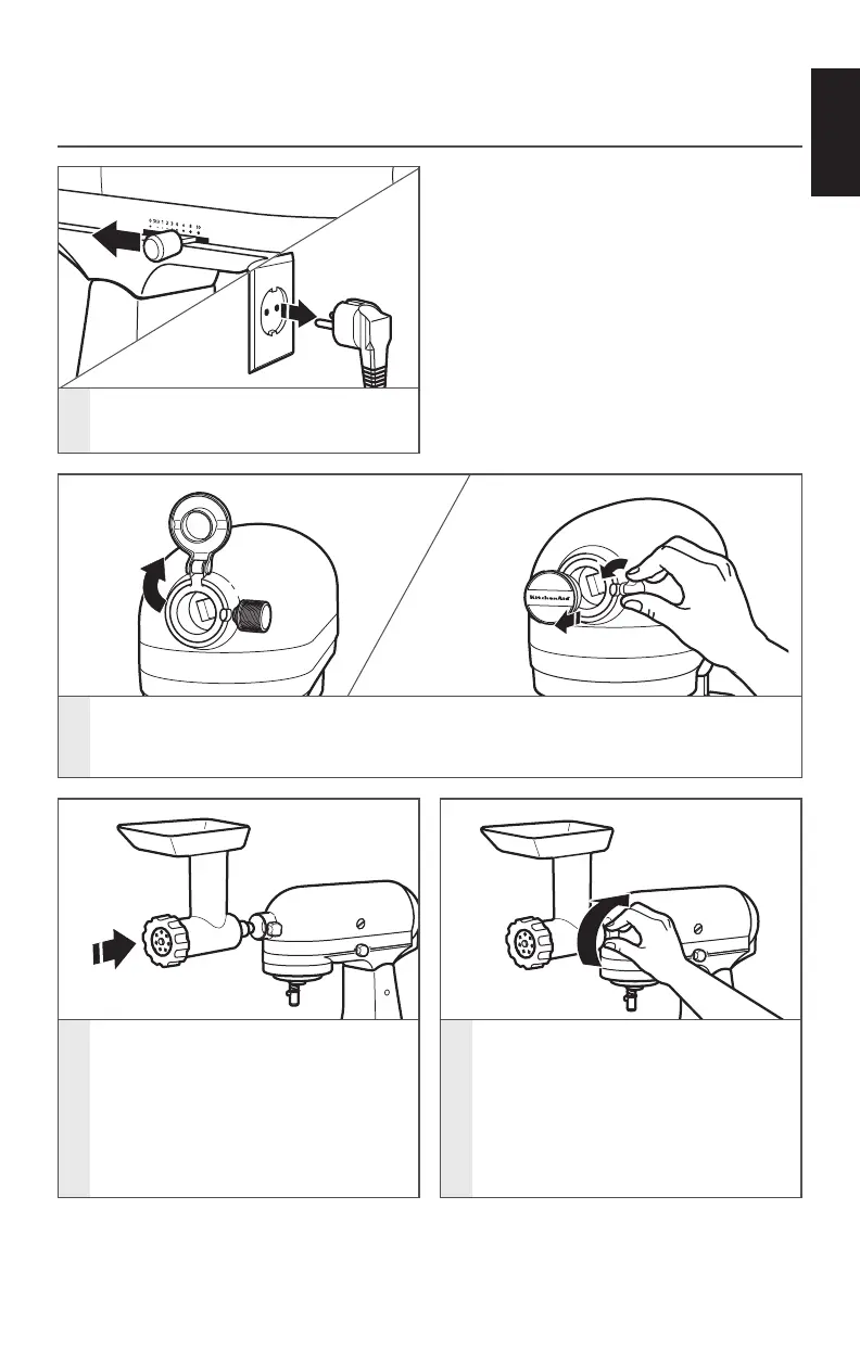 ATTACHING THE GRINDER/STRAINER TO THE STAND MIXER