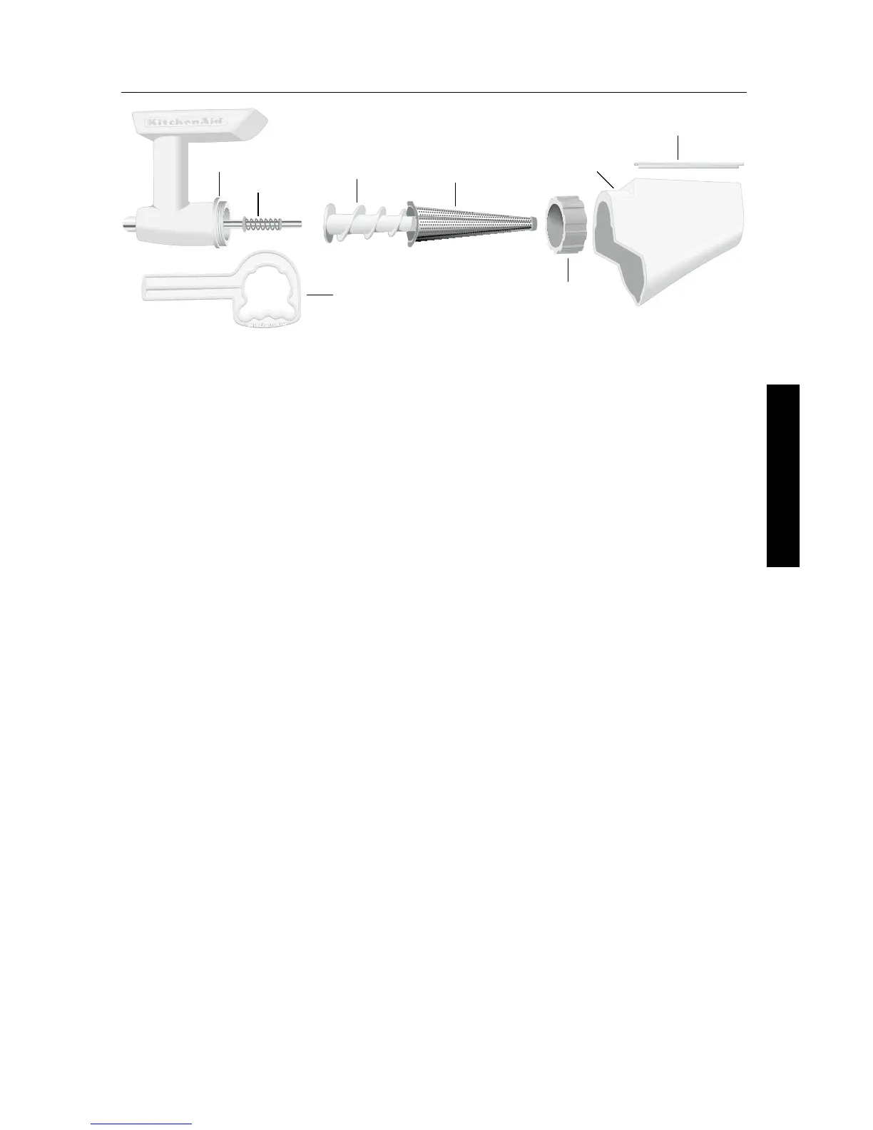 3. Fixez le cône tamis (D) sur l'extrémité étroite libre de la vis sans fin en faisant