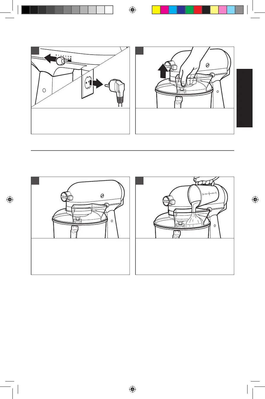 Gunakan Perisai Penuangan* untuk menghindari bahan terciprat keluar dari Mangkuk saat