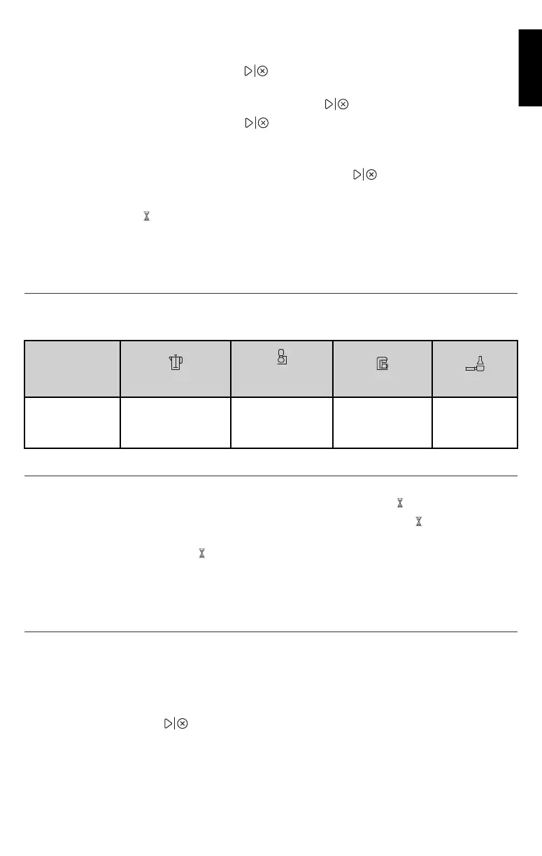 5. Så här avbryter du malningscykeln: håll in Start/Stopp ( ) i tre sekunder.