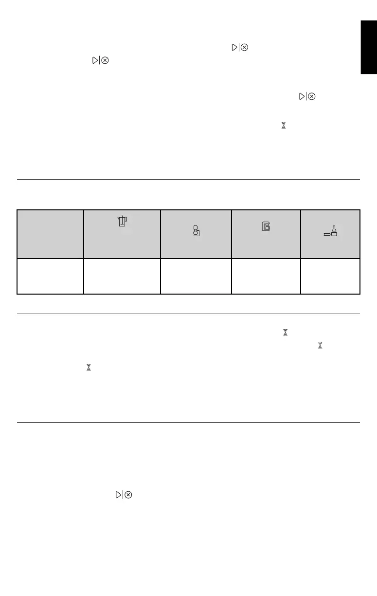 MERK: Kvernen kan stå på pause i opptil 15 sekunder. Etter 15 sekunder avbrytes