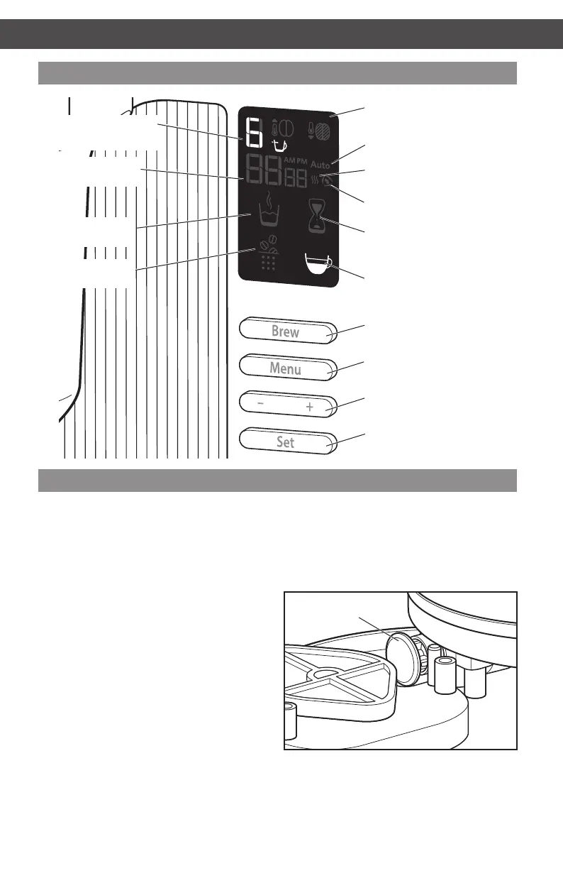 Características do mostrador e painel de controlo