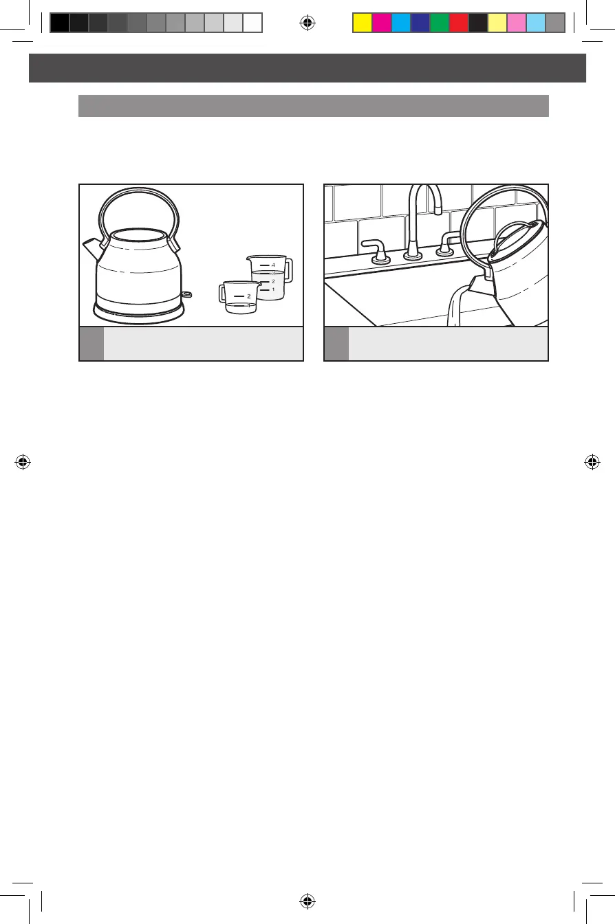 Fyll på med 0,75 L vann. Slå PÅ kjelen.