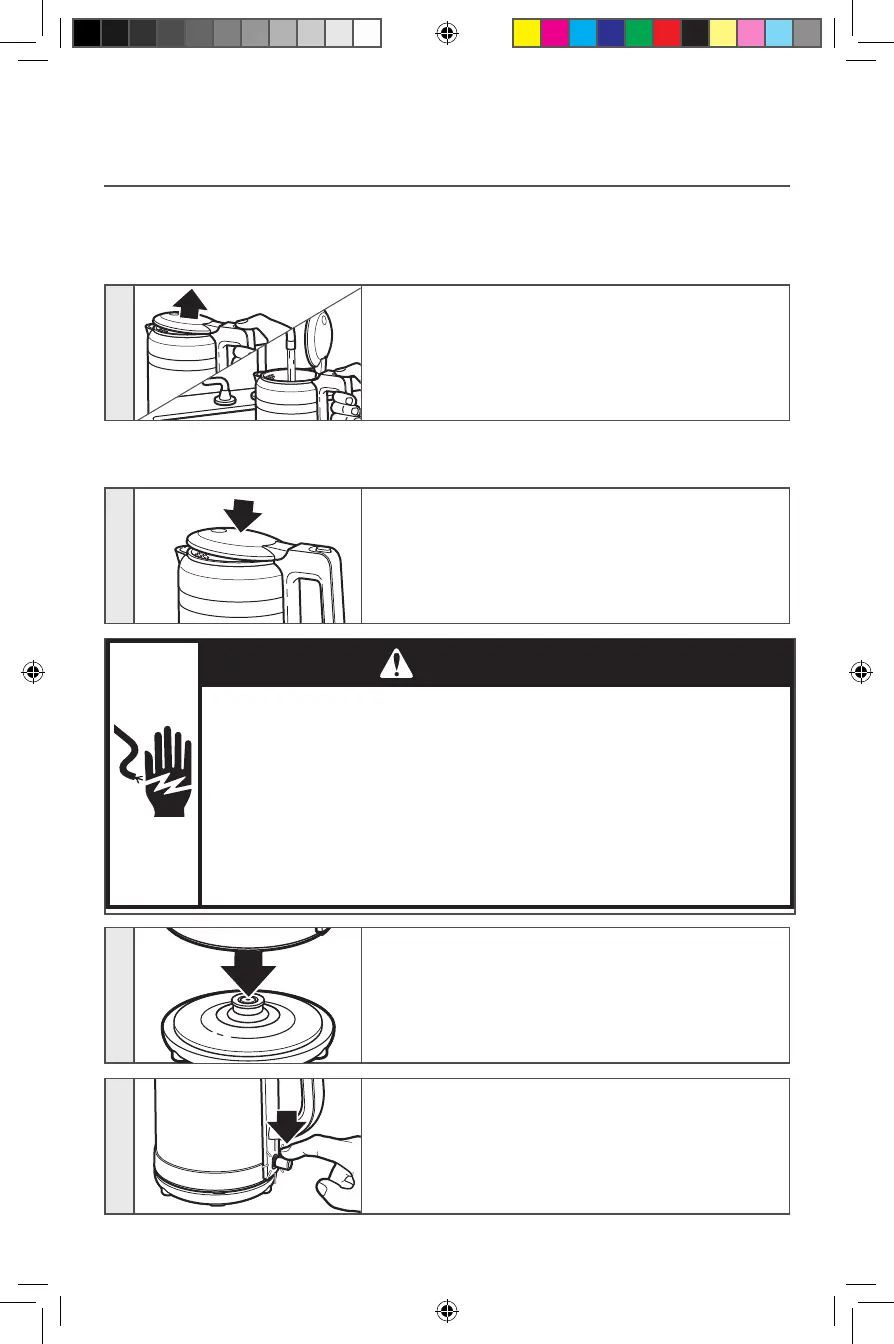 Öppna vattenkokarens lock genom att trycka på knappen