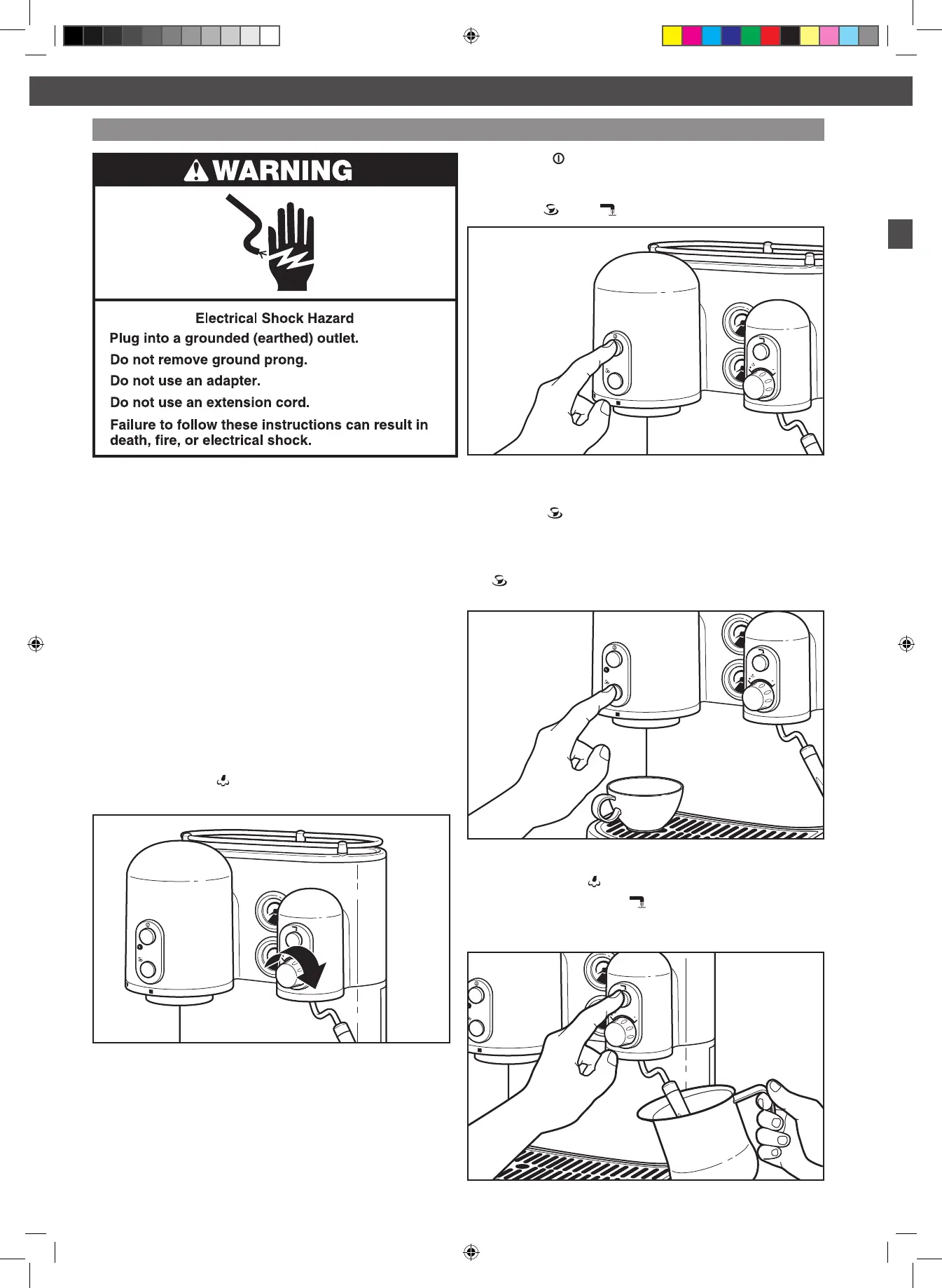 5. Press the “ ” button to turn the Espresso Machine