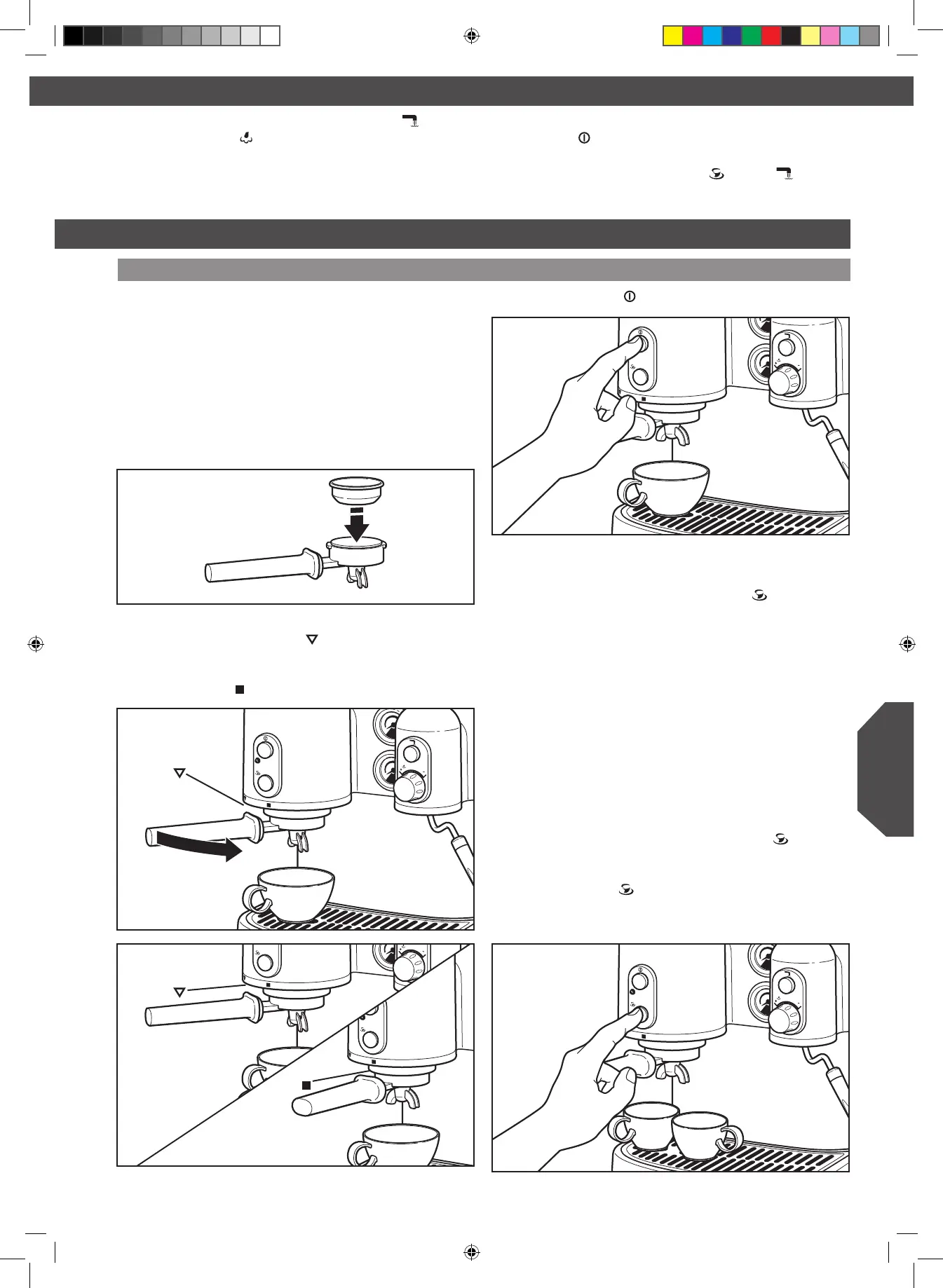 5. Tryk på knappen “ ” for at tænde espressomaskinen.