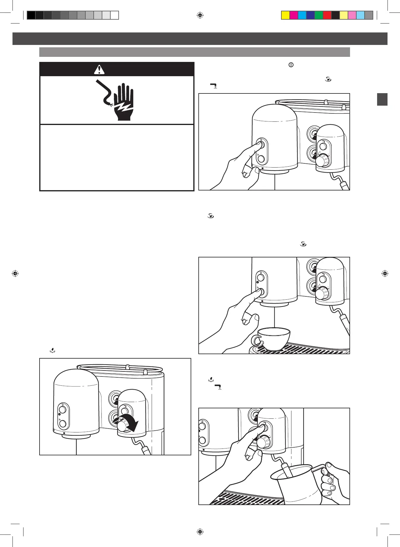 • espresso demlenmeden ya da sıcak su verlmeden brden