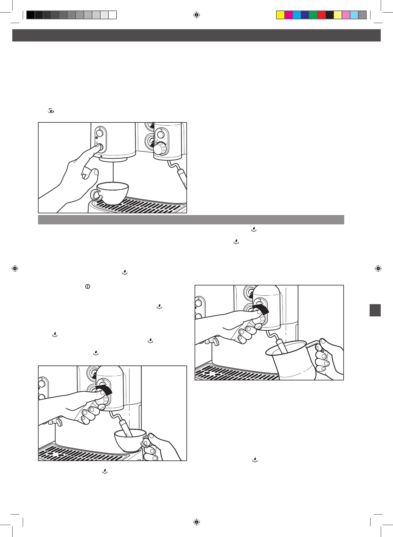 1. Druk de knop “ ” in om de espressomachine aan te zetten.