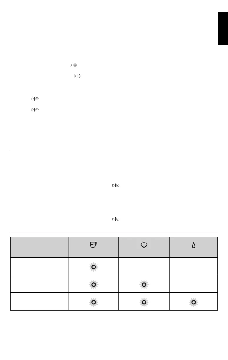 Espresso te selecteren en houd de knop 3 seconden ingedrukt. De indicatielampjes geven