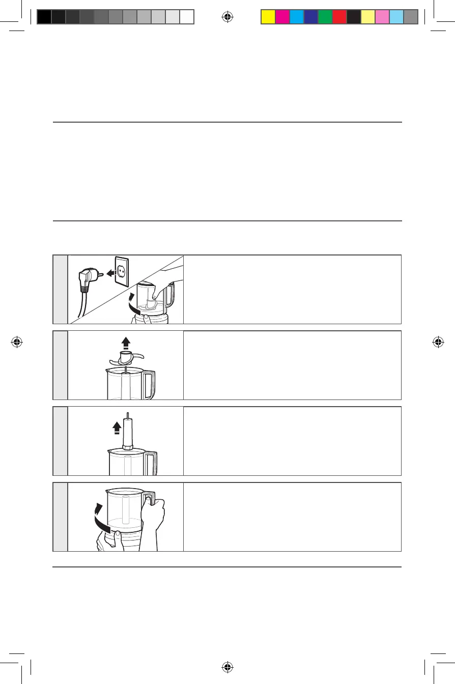 W celu oczyszczenia rozdrabniacza do żywności i wyjęcia składników z misy roboczej,