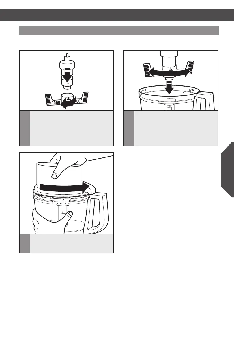 IMPORTANT : le fouet à œufs ne peut s’utiliser qu’avec le bol de travail.