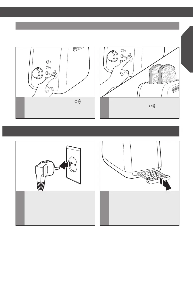 IMPORTANT: The tray will be hot immediately following a toasting cycle.