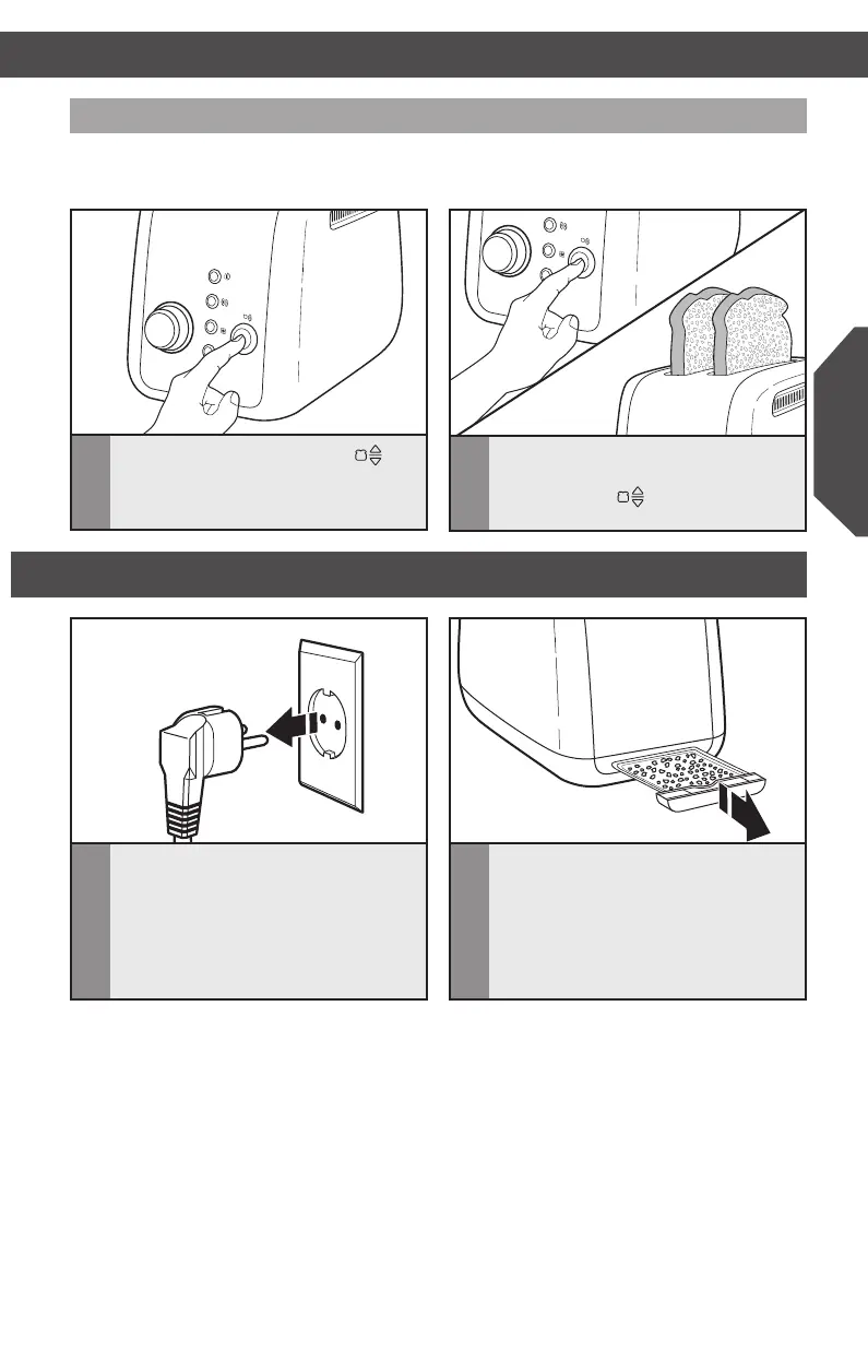 Brødristeren slukker og løfter brødet.