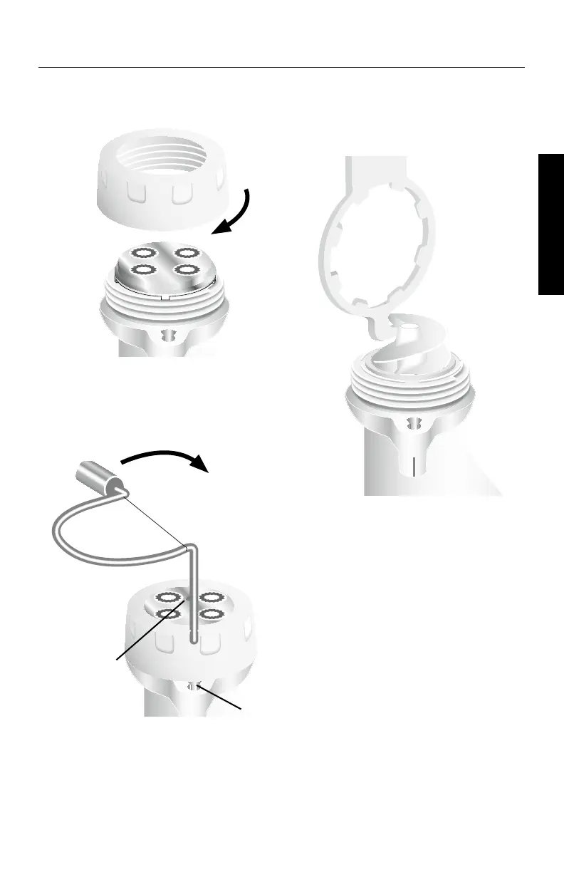 4. Sett inn trådskjæreren (B) slik at flensen (O)