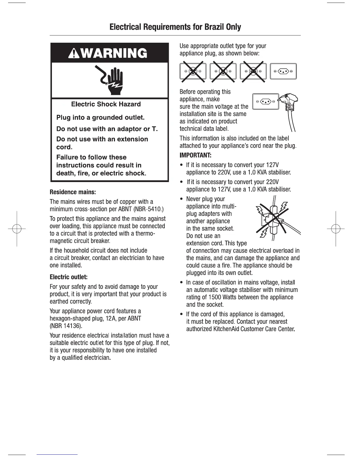KitchenAid 5KPM50 - Electrical Requirements
