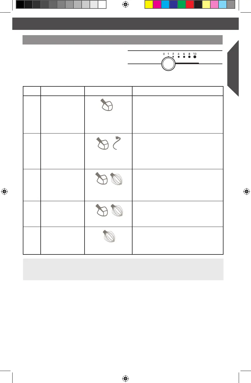 NOTE: Use Speed 2 to mix or knead yeast doughs. Use of any other speed creates high
