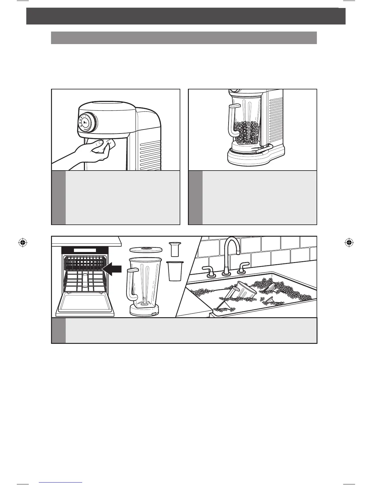 completamente la tapa, el tapón para ingredientes y el embudo, y lave todas las piezas