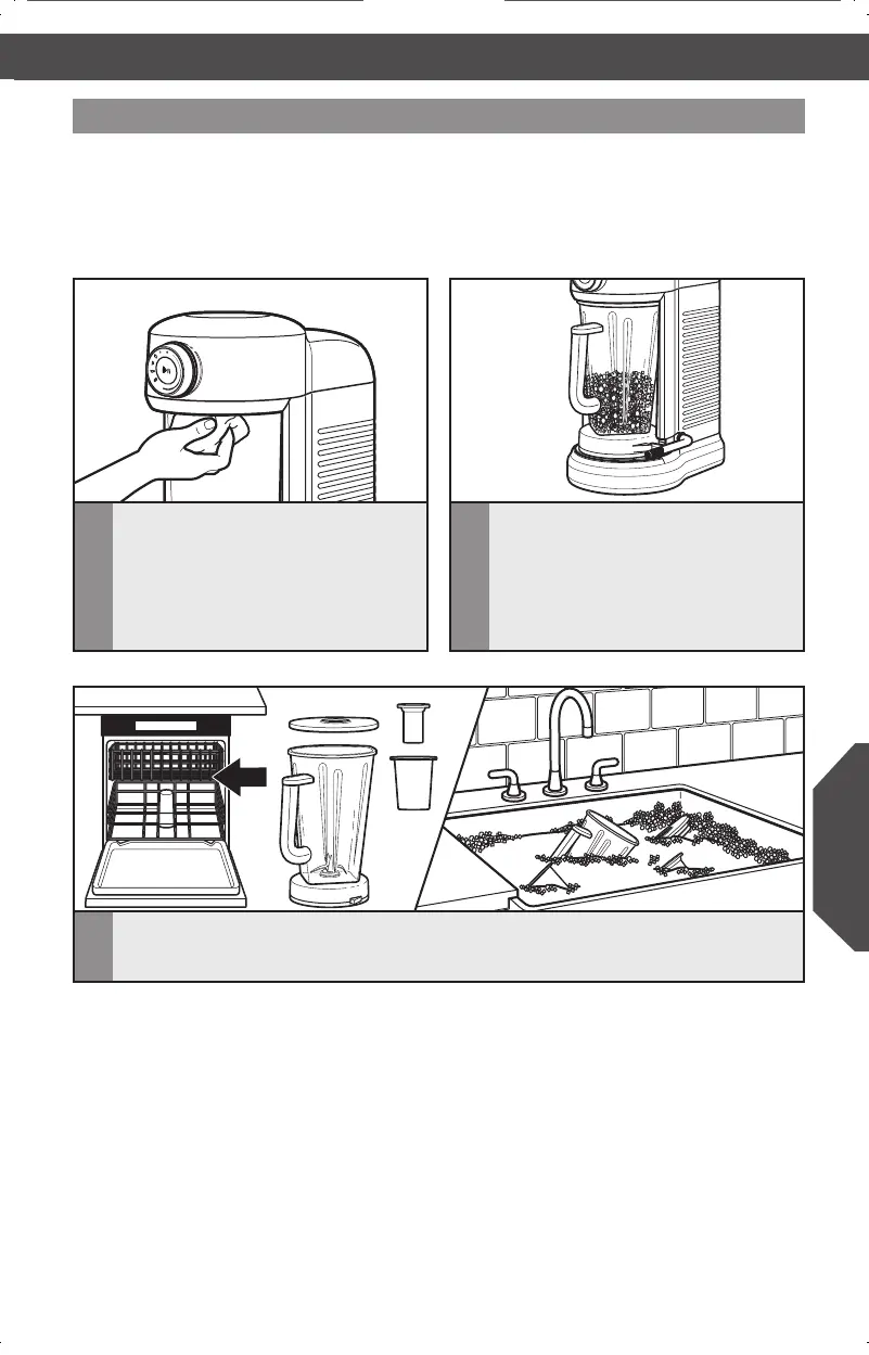 Rengöra kannan, locket, ingredienslocket och tratten: Diska alla delarna