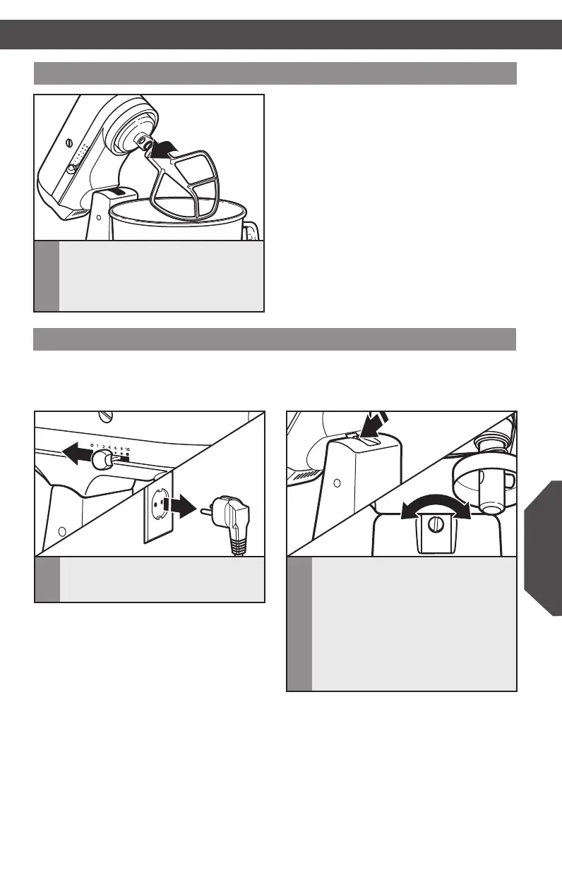 Collegamento/Rimozione della frusta piatta, della frusta a lo o del gancio impastatore