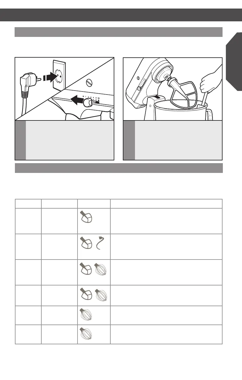 velocidad 1 para mezclar o amasar masas de levadura.