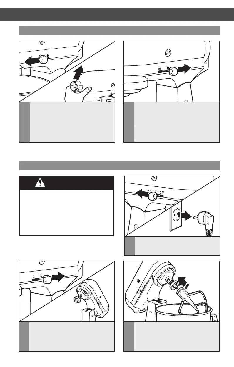 Tasovispilän, lankavispilän ja taikinakoukun kiinnittäminen ja irrottaminen