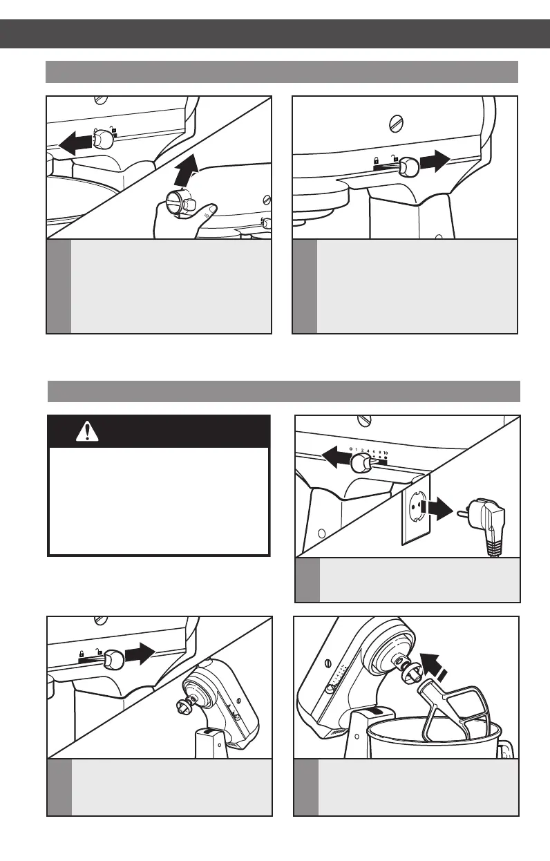 BEMÆRK: Motorhovedet skal altid være i låst placering, når mixeren bruges.