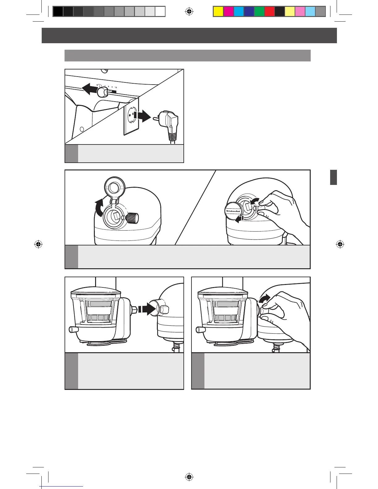 Fyrir borðhrærivélar með hlíf á hjörum fyrir fylgihlutadrif: Smelltu upp til að opna.