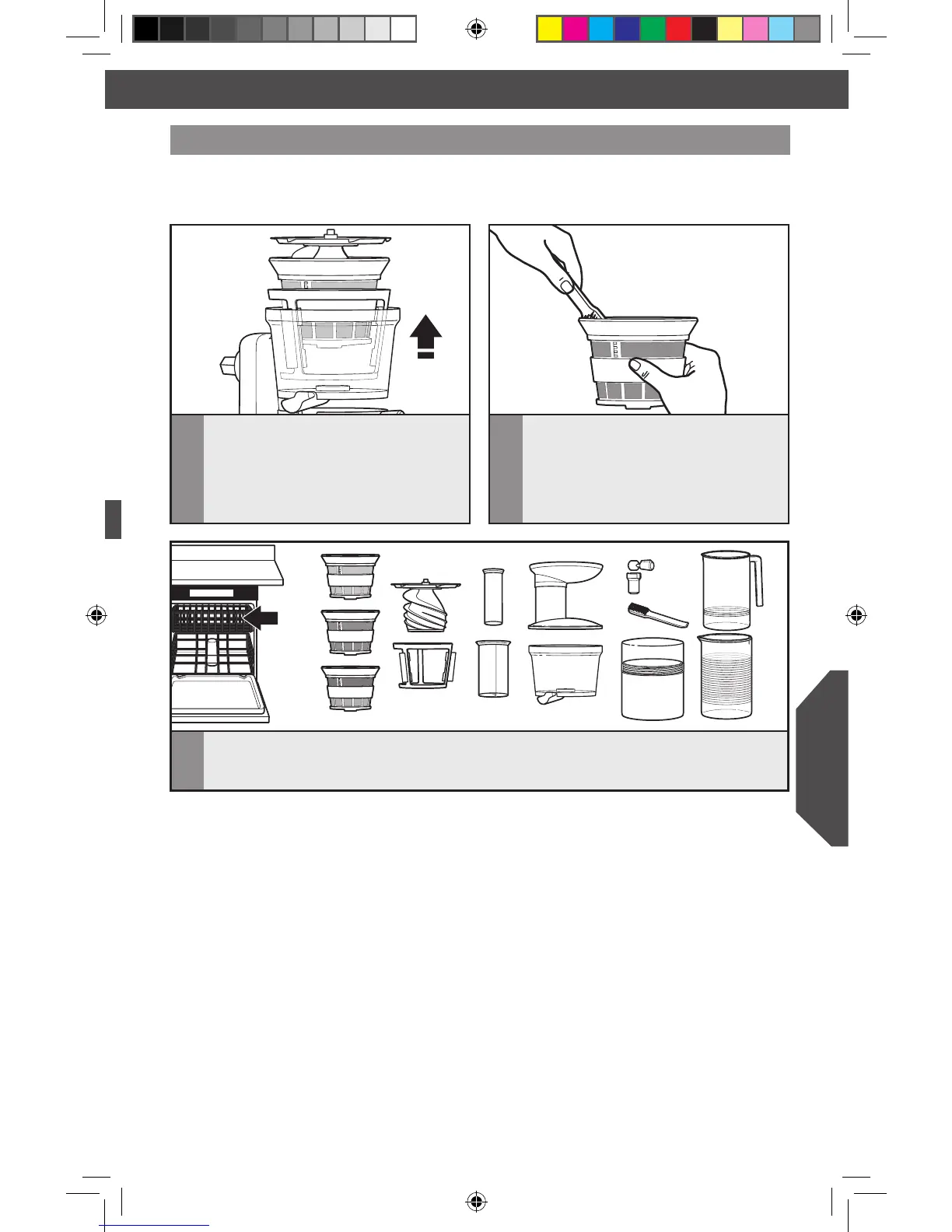 Снимите шнек. Выньте из чаши фильтр