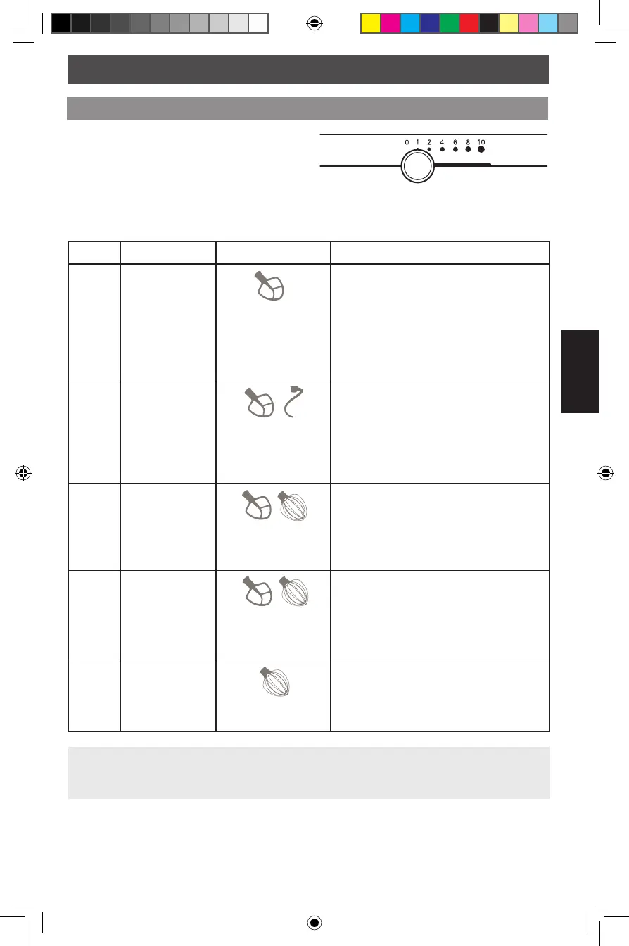 NOTA: per mescolare o lavorare impasti lievitati, utilizzare la velocità 2. Con le altre velocità