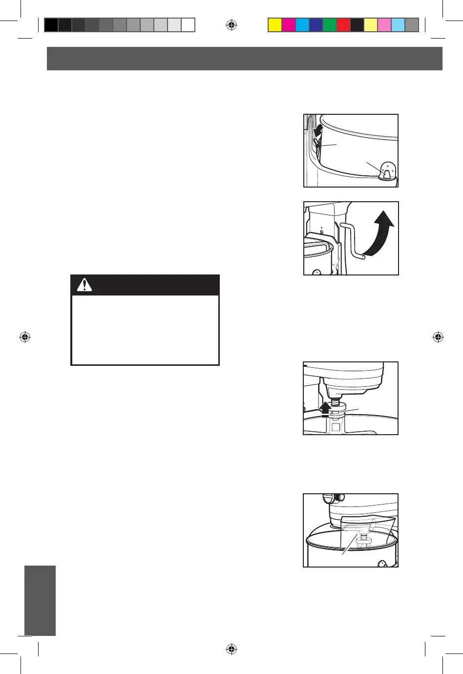 токозахранването. Свалете купата като завъртите лоста за повдигане на